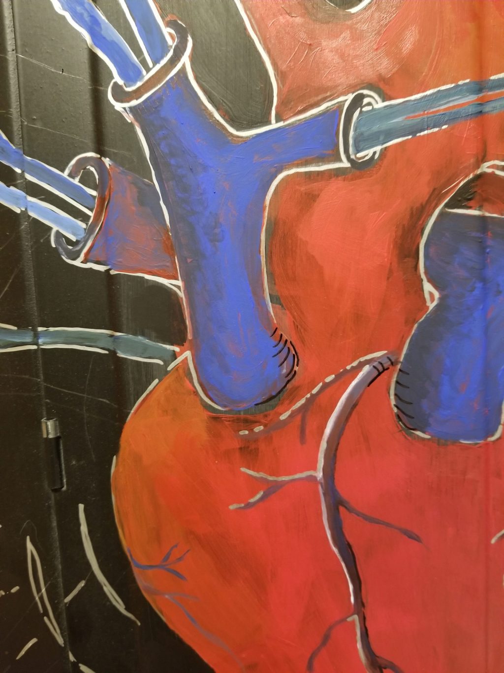 I have always admired how artwork can enliven public spaces or common everyday objects. I have two electrical panels in my laundry room and I wanted to cleverly integrate them into the remodeling of this small utilitarian space. As grey metal panels they were boring. With a little imagination, they now symbolize their importance as the heart and brain of my home. Literally making it possible to run the home much like the brain and the heart run a body. Although I am happy with some aspects, I feel more work still needs to go into completing this project.