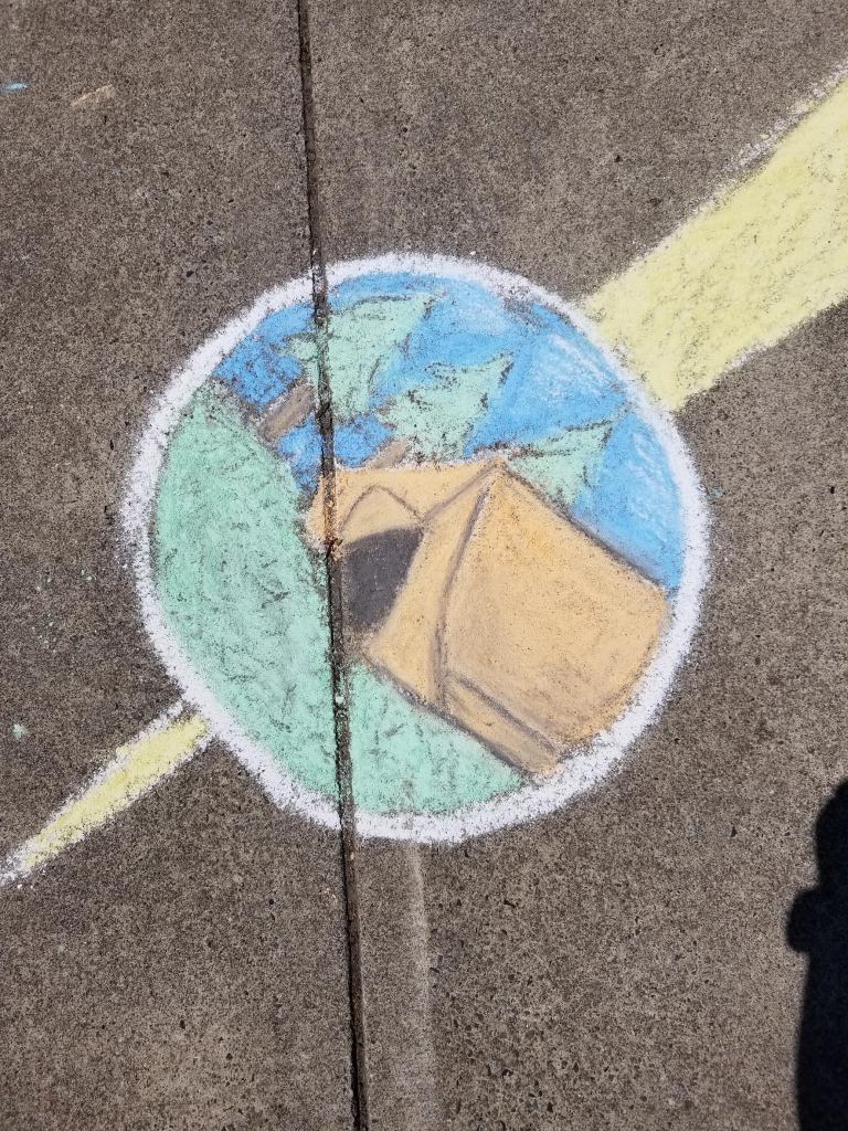 Mostly I am happy to say I also had a lot of spontaneous participation from those we could encourage to join us. I am sorry that I don’t remember all the names, but most were young kids. Please let me know if you helped and want to be added to this post. I do remember the last group Ezra, Adam and their mom, Val. This threesome had lots of talent to add to the final design. Ezra did an amazing job on the camping scene. His younger brother made the ice cream cone and Val was great at helping clean up areas or add needed details. The design evolved as the time went on and some areas may have changed or received embellishments. I hope everyone had fun and can appreciate what teamwork can do!