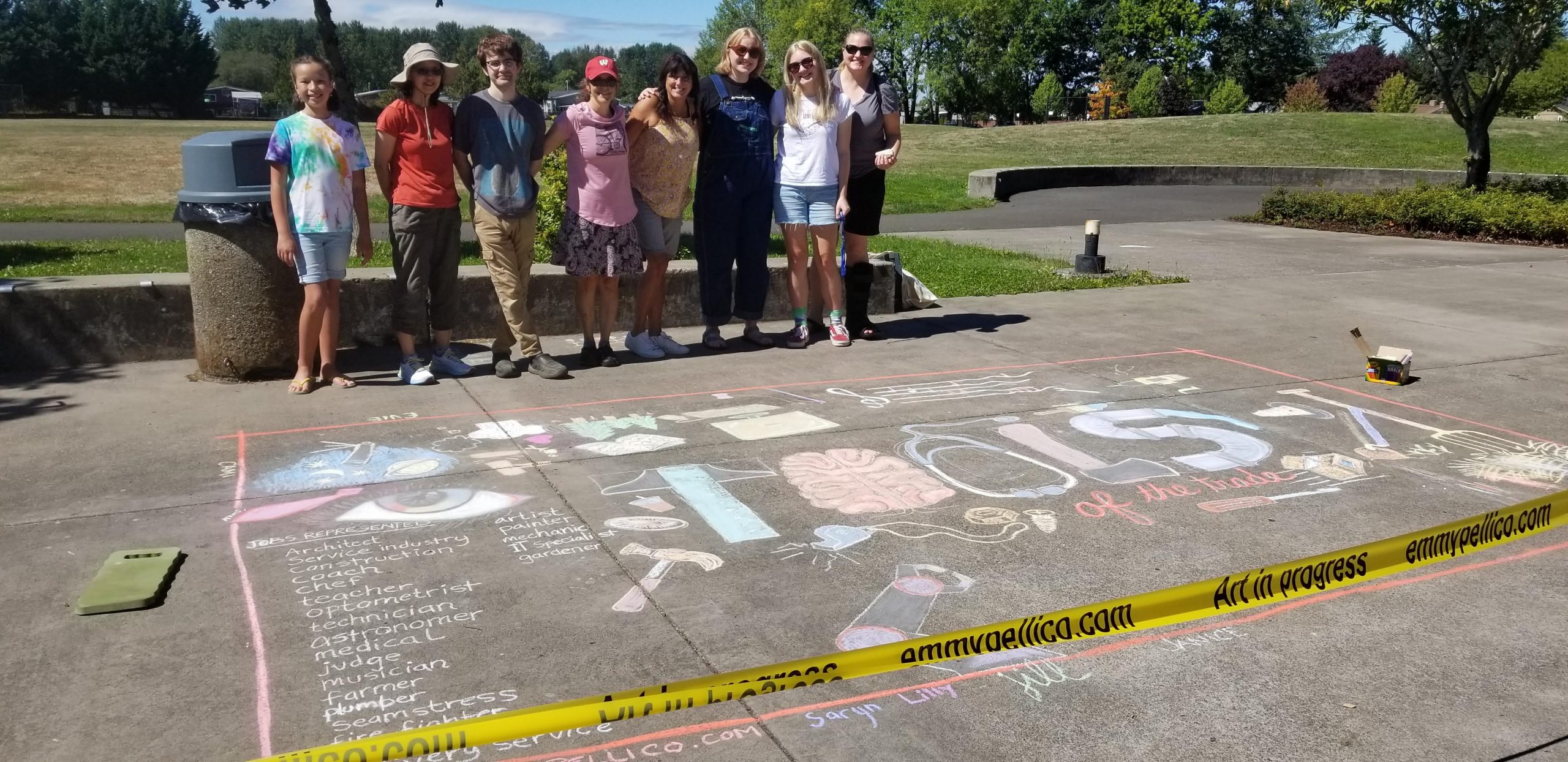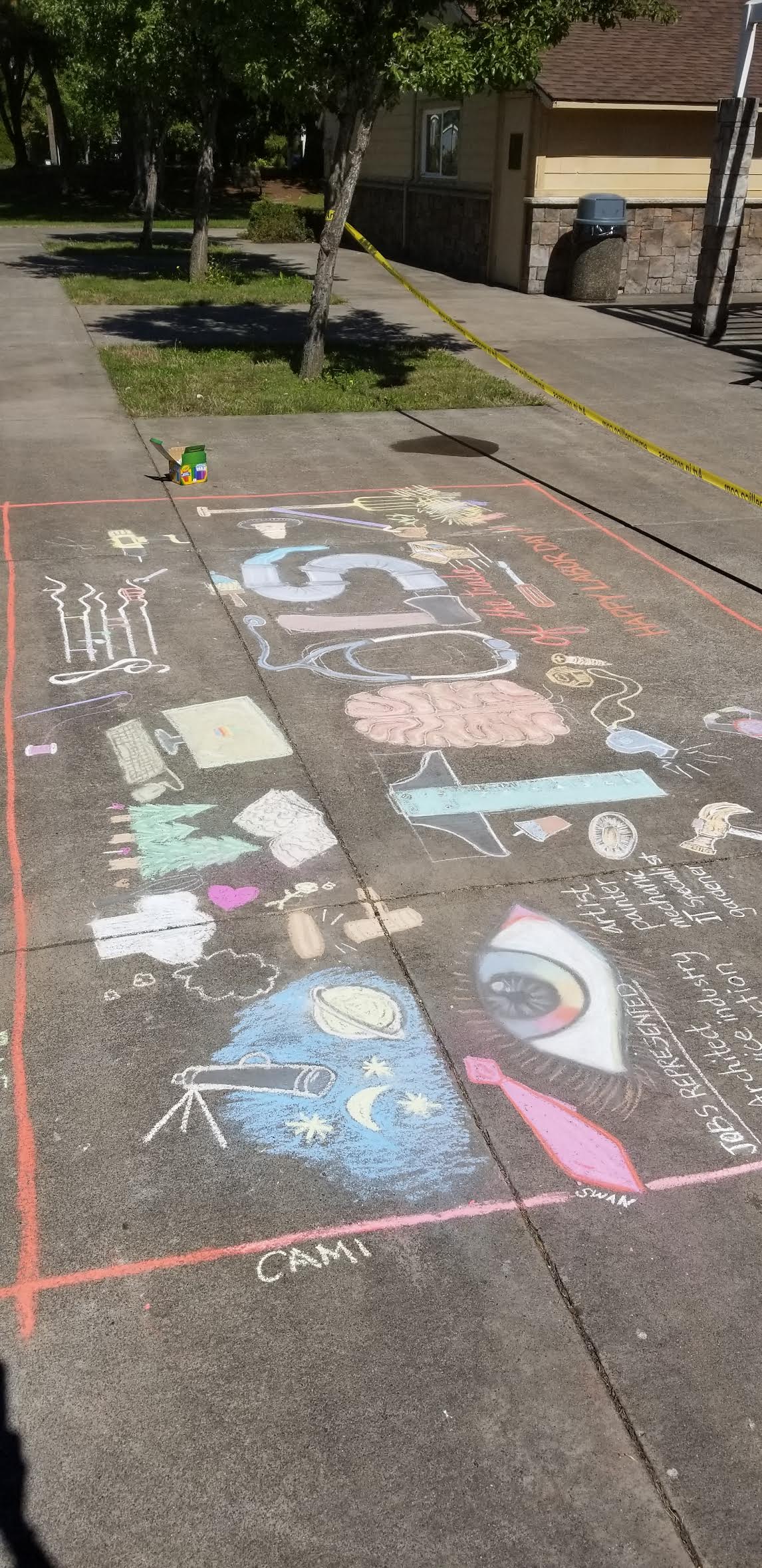 Enjoy the slideshow of our work. Mark your calendars for the next chalk art date: Sunday September 26th at Salmon Creek Regional Park/Klineline Pond in Vancouver, WA. More details about this event will be posted on Facebook events page.