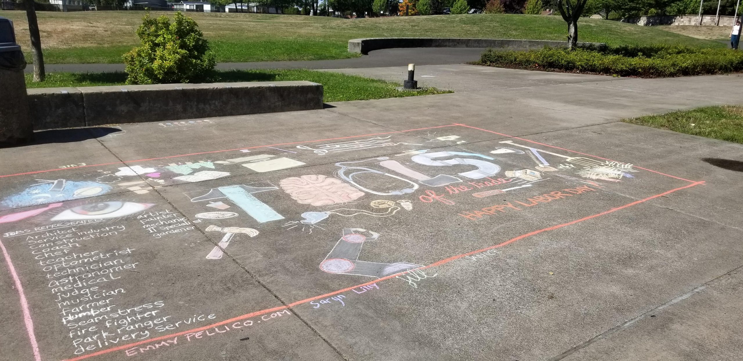 What would Labor Day be without a workforce? Even though I am currently retired, I was a proud member of that workforce both as a graphic artist and then as an educator. It would be great if everyone loved their job, but I know it is not always that easy or simple. Regardless, I feel it is important to appreciate those who contribute to our society through the work that they do each day. This chalk art project is designed to say “thank you” for your labor!